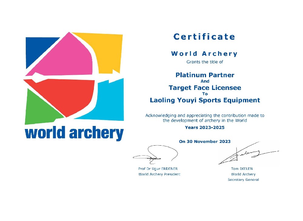 目前,主要生產(chǎn)和銷(xiāo)售射箭比賽及訓(xùn)練專(zhuān)用器材,包括:箭靶、靶紙、靶架、號(hào)碼牌、風(fēng)向旗、計(jì)時(shí)記分器等場(chǎng)地器材設(shè)備;反曲弓、復(fù)合弓、傳統(tǒng)弓、瞄準(zhǔn)器、防震桿等弓箭裝備;箭壺、護(hù)胸、護(hù)臂、護(hù)指等各類(lèi)箱包護(hù)具。公司所生產(chǎn)的射箭器材已通過(guò)國(guó)際射箭聯(lián)合會(huì)及中國(guó)射箭協(xié)會(huì)CAA認(rèn)證。